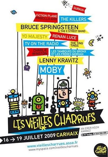 17 juillet 2009 : Le Festival des Vieilles Charrues qui se tient à Carhaix-Plouguer, dans le Finistère (F), accueille, jusqu’au 19 juillet, les artistes francophones BENABAR, SUPRÊME NTM, Renan LUCE, LA RUE KETANOU, Julien DORE et Francis CABREL.
