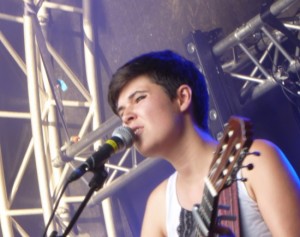 Au sein de ce nouvel espace qui tire surtout son nom de la programmation des chanteurs de l’Acadie, l’affiche était complètement constituée d’artistes issus d’outre-Atlantique. Le premier groupe, au nom cinglant de « Prenez garde ! » nous a emmenés pour un voyage musical traditionnel dans la seule région bilingue du Canada. Tout y était : chanson à répondre, cuillères et podorythmie. Superbe et enchanteur ! A 20h15 est arrivée, accompagnée d’un bassiste et guitare en bandoulière, une jeune chanteuse québécoise originaire du Saguenay : Marcie. Elevée musicalement aux chansons de Barbara, Brel ou Leclerc, cette artiste a littéralement séduit le public avec des compositions personnelles douces et tendres et des textes déjà très matures. Une seule reprise figura à son répertoire : « Ma jeunesse fout l’camp » de Guy Bontempelli (quand je vous parlais de texte mature…). Et puis, en rappel, face à la demande d’un public conquis, elle proposa « Le pont de l’île » de Félix Leclerc. Commençant sa prestation devant un public clairsemé, Marcie a réussi le pari de la terminer devant près de 500 personnes ravies de trouver enfin un espace de chanson et de mélodies au sein d’un festival devenu tonitruant de rythmes. Après Marcie, c’est à nouveau une chanteuse qui a animé l’espace d’une manière bien agréable : Caroline Savoie. Originaire du Nouveau-Brunswick, cette artiste, qui est probablement la plus jeune à l’affiche des Francos 2014, a proposé, malgré son âge, un set pop-rock très abouti avec des chansons qui ont fait mouche sur le public important en cette fin de soirée encore très chaude au sens propre comme au figuré.