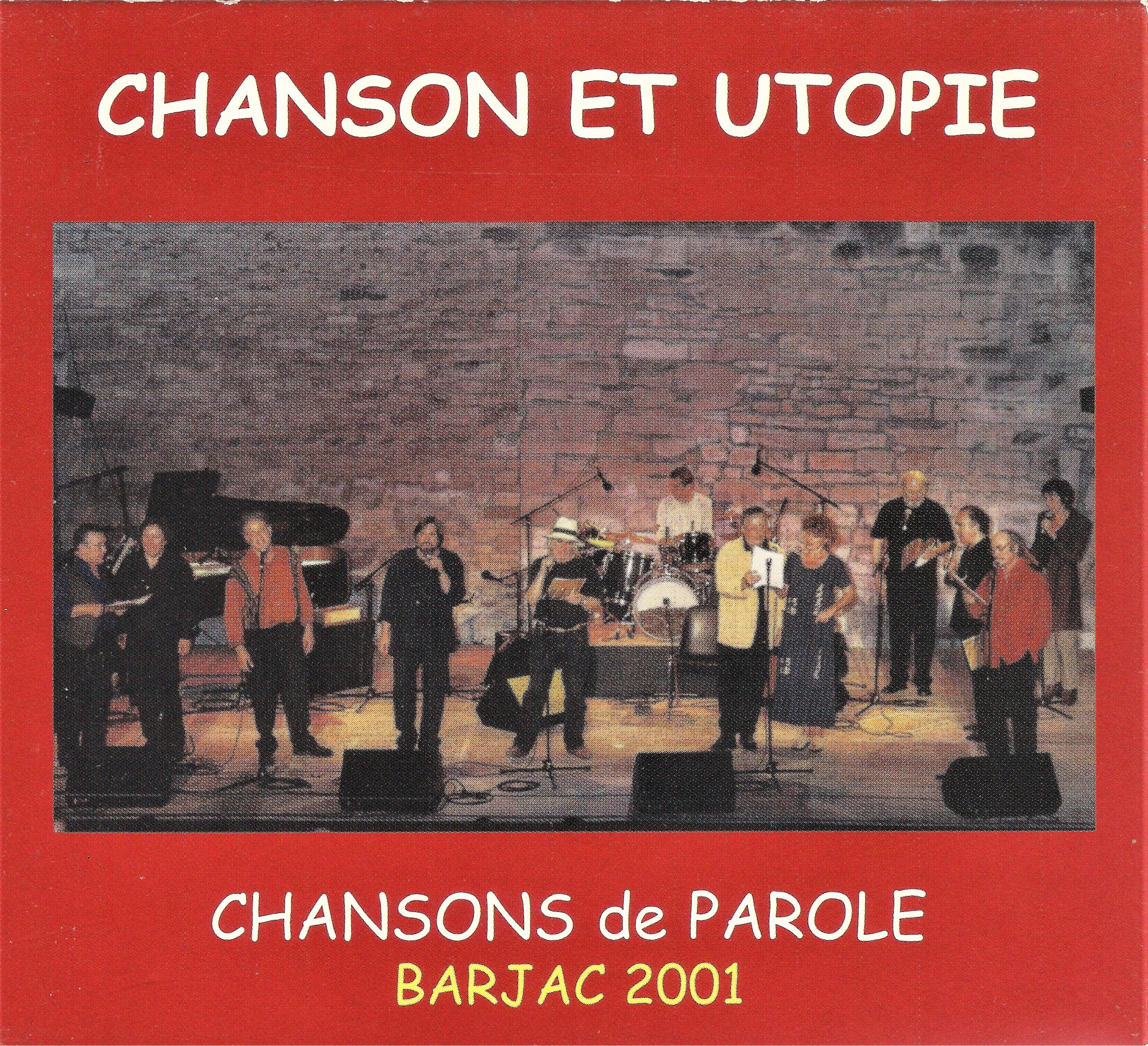 29 juillet 2001 : Le festival « Chansons de parole » qui se tient à Barjac (Gard – F) propose un spectacle exceptionnel intitulé « An 01 : chanson et utopie« . Sur la scène de la cour du château se succèdent, ce soir-là, les artistes Morice BENIN, François BERANGER, Bernard HAILLANT, JOFROI, Gilbert LAFFAILLE, Marek MOGILEWICZ, Véronique PESTEL, Gérard PIERRON, Marc ROBINE, Serge UTGE-ROYO et Christiane STEFANSKI. Toutes ces personnalités interprètent ensemble ou individuellement des chansons qui font partie de leur répertoire ou d’autres comme celui de Georges Moustaki, Guy Béart, Raymond Lévesque, Allain Leprest, Gilles Vigneault, Jacques Brel ou Léo Ferré. Le spectacle fait l’objet d’un disque commercialisé de manière très confidentielle et réalisé à partir d’un enregistrement vidéo réalisé par Marcel Gerber.