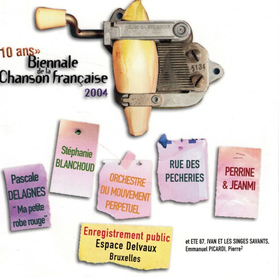 11 septembre 2004 : La finale de la 6e Biennale de la Chanson Française de Bruxelles (B), qui fête aussi ses dix ans d’existence, a lieu aux Halles de Schaerbeek avec cinq artistes ou groupes qui ont pour nom PERRINE & JEANMI, Pascale DELAGNES, Stéphanie BLANCHOUD, ORCHESTRE DU MOUVEMENT PERPETUEL et RUE DES PECHERIES. Le jury, composé de 21 membres venus de Belgique, France, Suisse et Québec, attribue le premier prix à l’Orchestre du Mouvement Perpétuel de Peter Bultijnck et Alejandro Petrasso. Stéphanie Blanchoud se classe deuxième et Perrine et Jeanmi troisièmes. Le prix du public revient à Rue des Pêcheries.