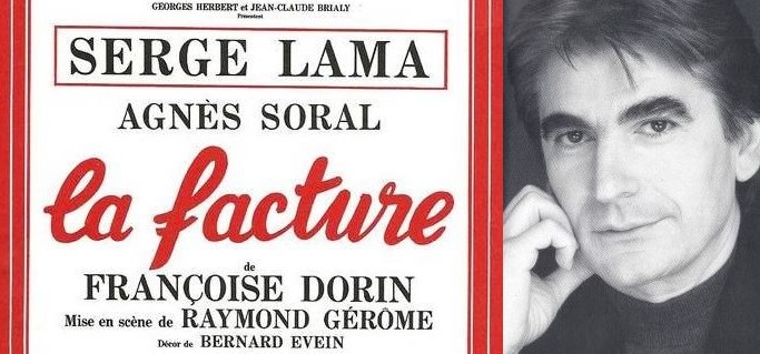 4 novembre 1990 : Faisant une pause dans sa carrière de chanteur, Serge LAMA est sur les planches du Théâtre Royal de Mons (B), aux côtés d’Agnès Soral notamment, pour jouer la comédie dans la pièce « La facture » de Françoise Dorin. C’est le cycle des galas Karsenty-Herbert qui propose cette tournée belge à l’artiste qui sera à l’affiche du théâtre des Bouffes Parisiens à partir du 17 janvier 1991.