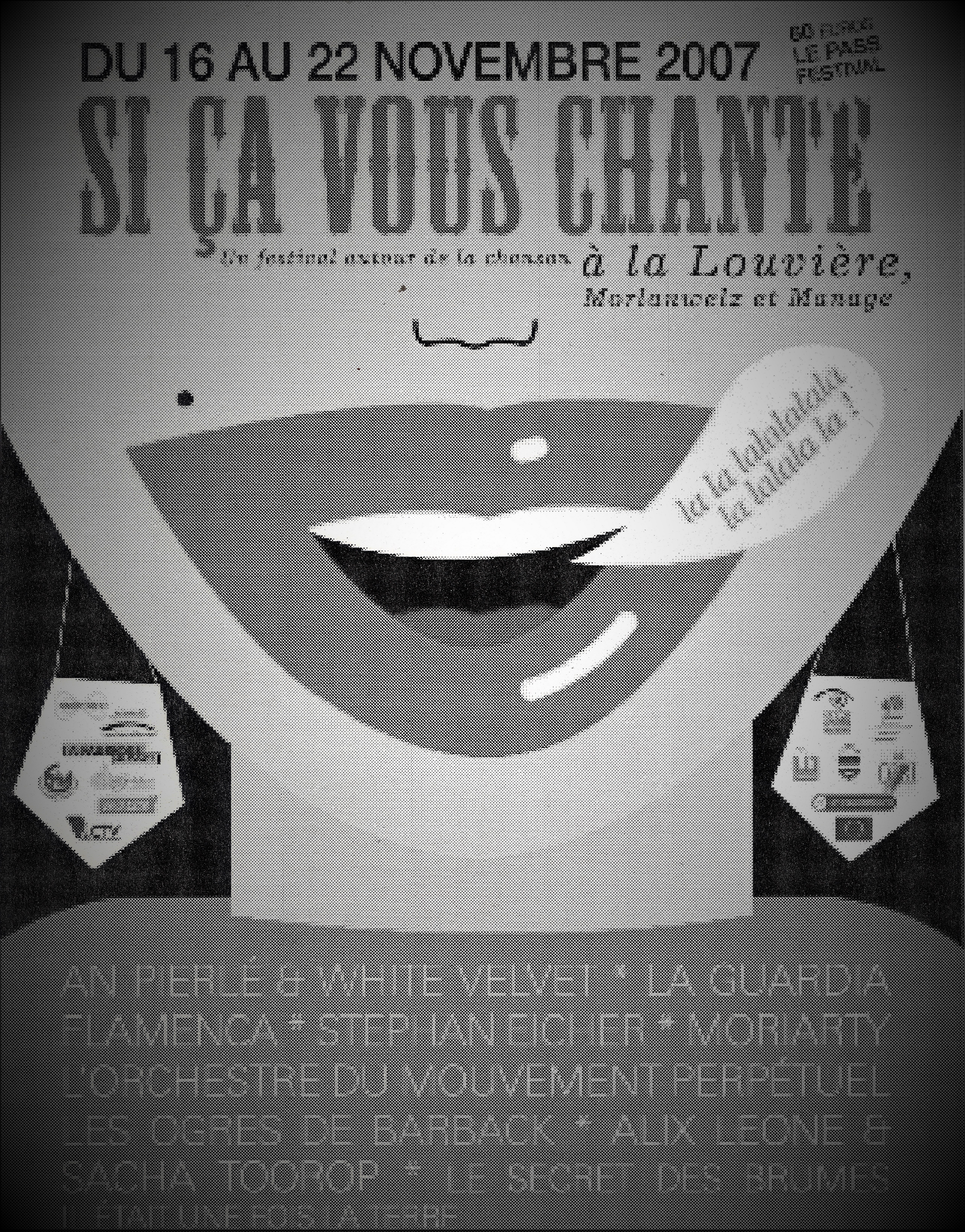 16 novembre 2007 : La région de La Louvière, en Belgique, accueille la quatrième édition du festival « Si ça vous chante » qui va durer jusqu’au 22 novembre. A l’affiche des différents concerts et spectacles, il y a notamment Sacha TOOROP, Alix LEONE, l’ORCHESTRE DU MOUVEMENT PERPETUEL, les OGRES de BARBACK et Stéphan EICHER.
