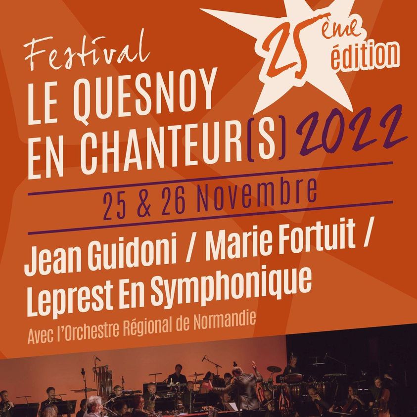 25 novembre 2022 : Après deux années d’absence en raison de la pandémie du coronavirus covid-19, le festival « Le Quesnoy en chanteur(s) » est à nouveau organisé dans cette ville des Hauts de France. Pendant deux jours, un hommage sera rendu à Allain Leprest et Anne Sylvestre qui, tous deux, faisaient partie des artistes ayant participé au festival qui fête, en 2022, ses 25 ans. Le vendredi 25, la chanteuse Marie FORTUIT propose « La vie en vrai », un spectacle où elle rend hommage à Anne Sylvestre. Le même soir, Jean GUIDONI lui succèdera pour interpréter, notamment, les chansons de son dernier album : « Avec des si ». Le samedi 26, c’est un concert exceptionnel qui sera dédié à l’oeuvre d’Allain Leprest avec un orchestre symphonique de 40 musiciens accompagnant, sur la scène du Théâtre des Trois Chênes, CLARIKA, ENZO ENZO, Romain DIDIER et Cyril MOKAIESH.