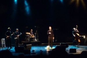 Première formation à se présenter, « Tout finira bien » a d’emblée planté son décor et essayé de nous inviter dans son univers musical aux parfums de jazz oriental. Emmenée par Gilles Bourgain, à la fois flûtiste et chanteur d’origine française, la bande de ses accompagnateurs le suit là où il le décide. Et si la chanson « Le mouton mouillé » sollicite une participation du public, c’est la seule interaction de ce set professionnel un peu froid malgré un certain humour dégagé par les textes conjugués à la première personne du singulier. Il en est ainsi de « Ma Belgique » où le chanteur avoue sa méconnaissance charmante du plat pays qui l’héberge.