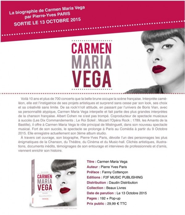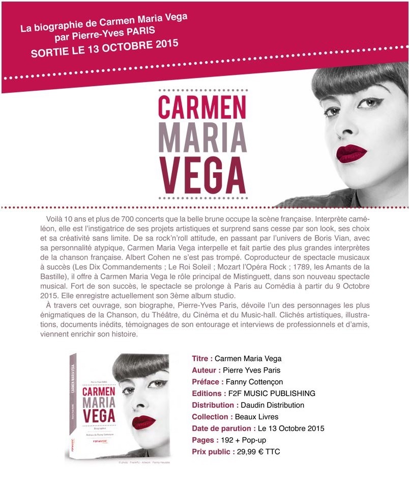Elle marque les esprits de manière indélébile partout où elle passe. Et, depuis 10 ans, elle a présenté ses chansons dans les endroits les plus improbables. Ce petit bout de chanteuse a de l’énergie à revendre. Et c’est cette énergie communicative que Pierre-Yves Paris a essayé de compacter dans un livre qui retrace la biographie de Carmen Maria Vega.