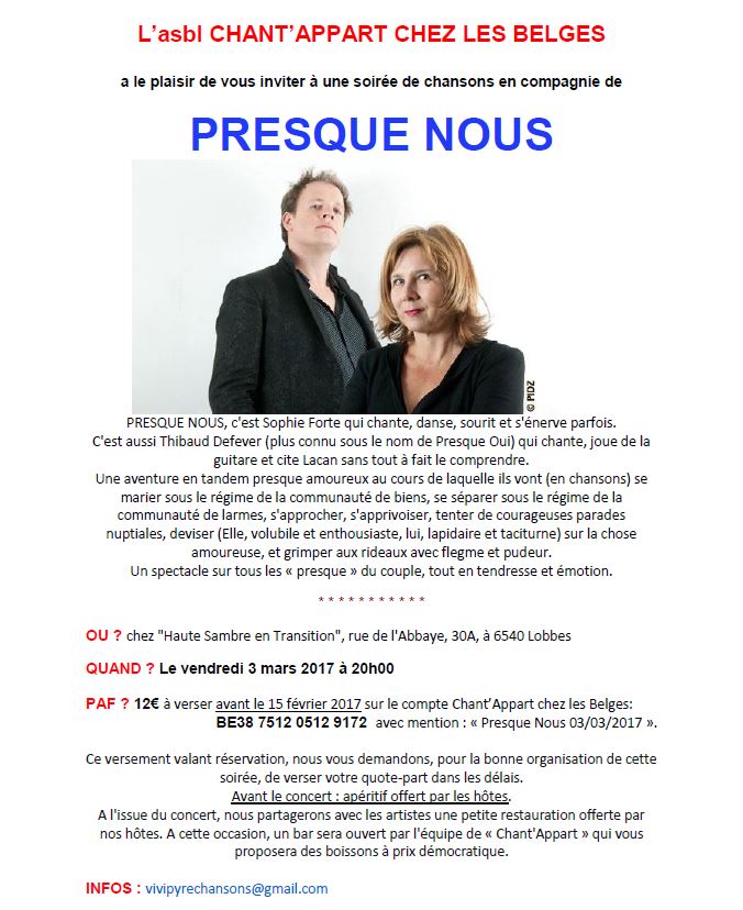 NOMBRE DE PLACES TRES LIMITE : RESERVATIONS OBLIGATOIRES