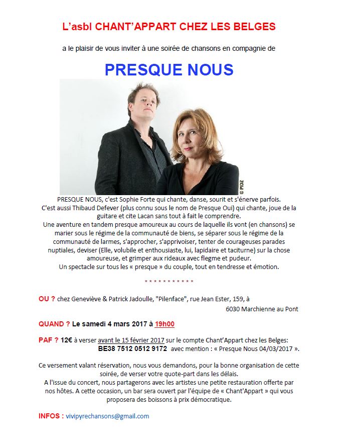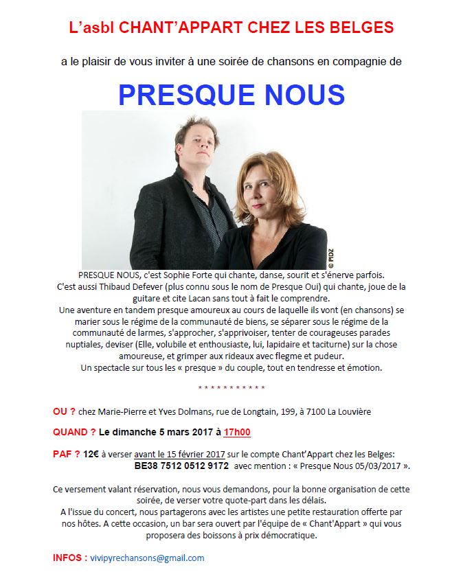 Renseignements et demande de places par courriel à l’adresse vivipyrechansons@gmail.com