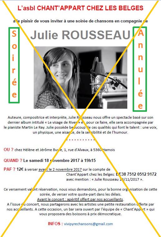 Julie ROUSSEAU le 18 novembre 2017 à HAMOIS : soirée annulée