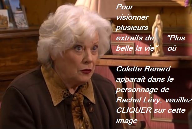 Grand prix de l’Académie Charles-Cros, Officier des Arts et Lettres et Chevalière de la légion d’honneur, Colette Renard se révèle aussi comme une figure du cinéma et de la télévision. Elle joue notamment aux côtés d’Yves Montand dans le dernier film tourné par ce dernier: « IP5 » de Jean-Jacques Beineix en 1992. Après une longue séparation volontaire avec le milieu artistique pour se ressourcer en province en travaillant la terre et la poterie, elle revient sur scène une dernière fois à Paris en 2002 pour un récital. Puis, entre août 2004 et septembre 2009, elle incarne le truculent personnage de Rachel Lévy, doyenne de la série télévisée française « Plus belle la vie ».