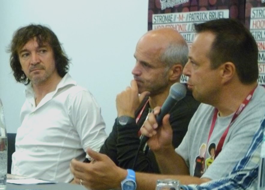 Cali, Charles Gardier, directeur des Francos de Spa et Hugues Debaty, directeur du Franc’Off lors de la remise des prix 2014 – Photo (c) Passion Chanson