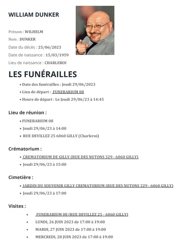 Le chanteur belge wallon William DUNKER est décédé ce 25 juin 2023