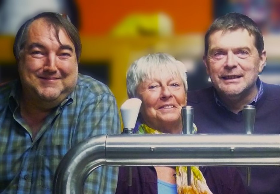 De gauche à droite, l’équipe de « Chant’Appart chez les Belges » lors des derniers concerts: Jean-Luc, Vivi et Daniel au bar. Photo (c) Passion Chanson