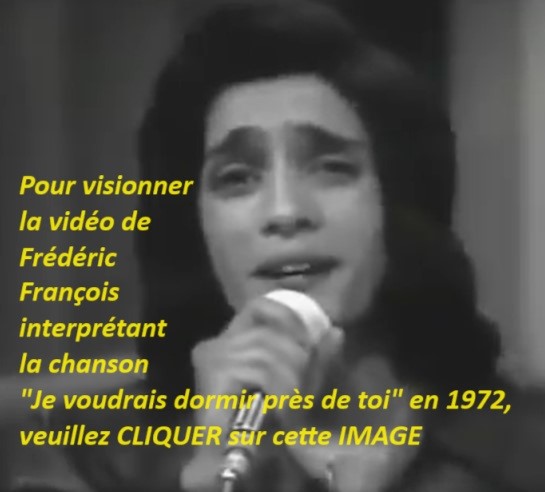 Cette fois, Frédéric François se fait un nom parmi les stars du hit-parade et son statut sera confirmé avec le tube de l’été 1972: « Je voudrais dormir près de toi ». 500.000 exemplaires de ce 45 tours se vendent en quelques semaines.